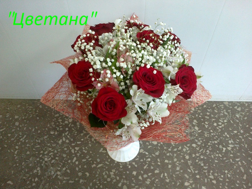 Розы с альстромерий