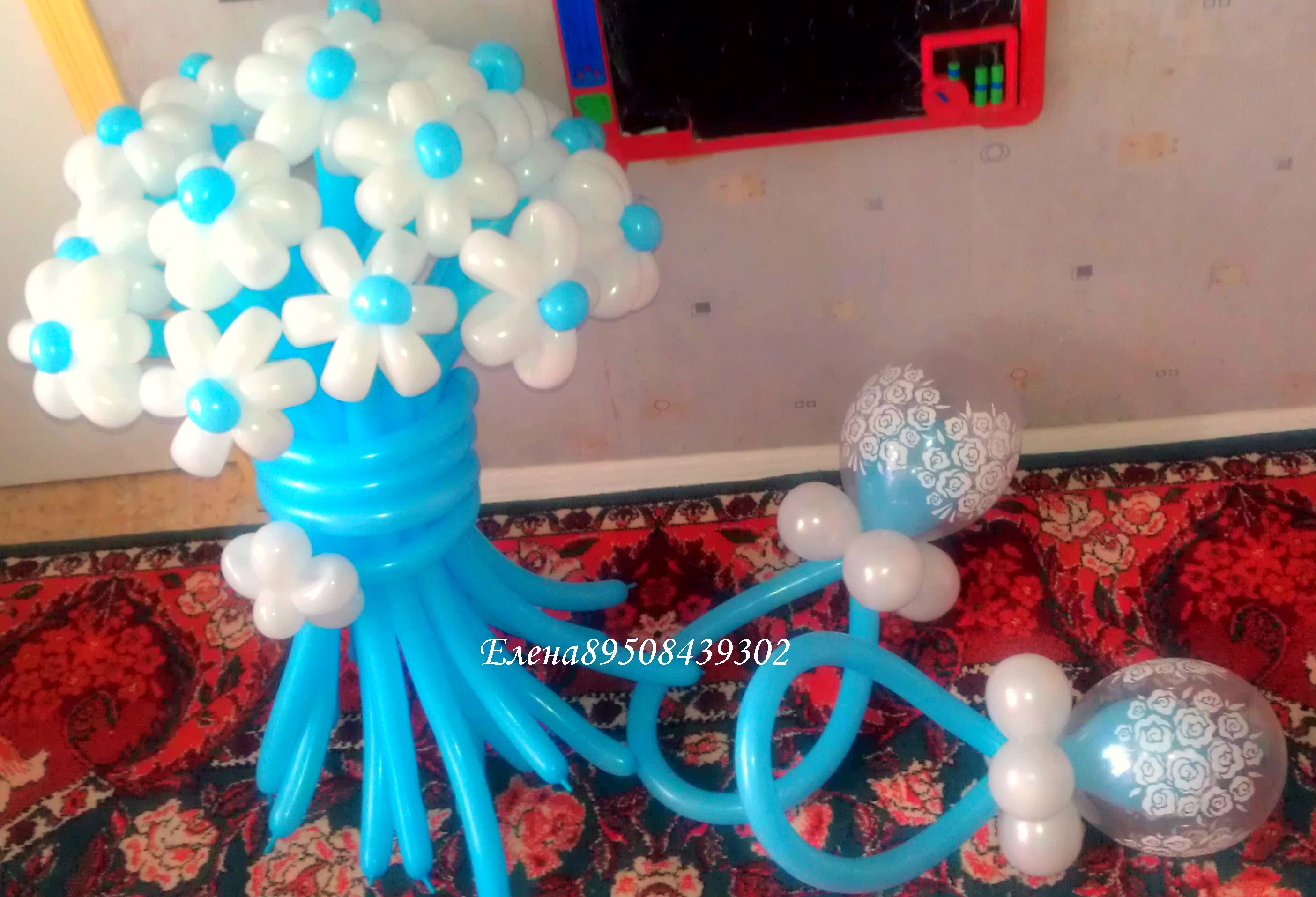 набор на выписку мальчика из роддома - букет голубых ромашек и 2 соски