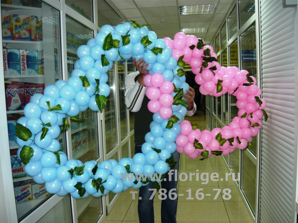 Переплетённые свадебные сердца из шариков